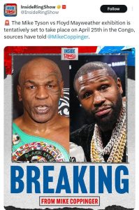 Tyson Vs Mayweather exhibition fight is tentatively set for April 25th in the Congo – InsideRingShow
